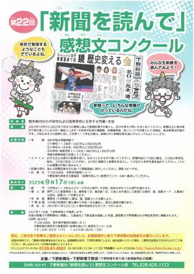 表記の2つのコンクールが開催されます。9月17日(水)必着で、直接下野新聞社教育文化事業部まで申し込んでください。