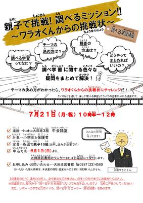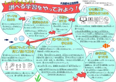 市図書館を使った調べる学習コンクールが開催されます。応募する希望があれば、9月30日(火)までに、担当(粕谷)へ作品を提出してください。
