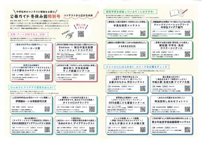 中学生向けコンテスト情報がまとめられた公募ガイドを添付しました。興味がありましたら、QRコードより申し込んでください。