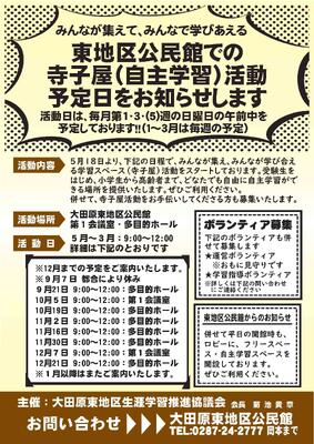大田原東地区生涯学習推進協議会が主催する「東地区公民館寺子屋(自主学習)活動」のチラシを掲載しました。興味のある方は、ご参加ください。