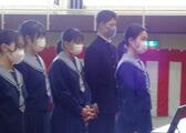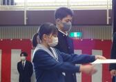 同窓会入会式後、3年生の修了式を行い、修了証書及び記念品を授与しました。式後、代表生徒が3年間の振り返りや4月からの決意を述べるとともに、外部団体・校内表彰等を行いました。