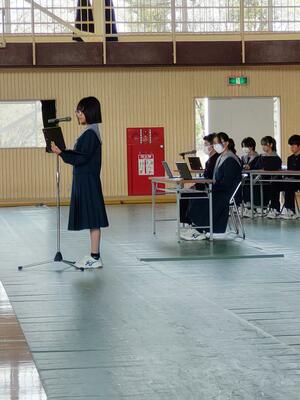 生徒会長の田代さんをはじめ、生徒会役員が中心となって準備してきた生徒総会が行われ、執行部、各委員会、学年委員、各部活動からそれぞれの活動計画や予算が発表されました。より良い学校を目指し、自主的な活動が展開されることでしょう。