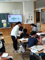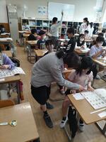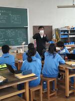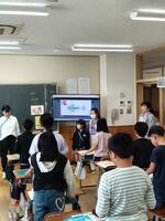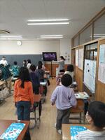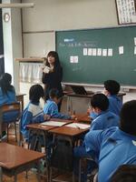 英語科の教員が大田原小学校に出向き、5年生と6年生各学級週1時間ずつティーム・ティーチングにより英語の授業を行っています。他、算数と体育についても実施します。