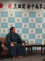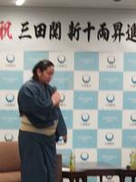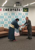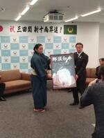本校の卒業生で、大相撲二子山部屋に所属している三田関(三田大生)が、大けがを乗り越えてこのたび新十両昇進を果たし、帰郷して市長に表敬訪問しました。記者から今後の目標を尋ねられると、「横綱になることです。」と力強く答えていました。活躍が楽しみです。