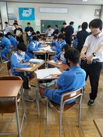 生徒会主催の全校討議が行われました。よりよい若草中にするために、学級討議を経て生徒全員で議論するという開校以来続いている生徒会行事です。出された意見を役員生徒が集約、吟味し、改めて提案します。