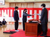 本日をもって、1・2年生の教育課程が終了し、修了書そして進級記念品を授与しました。また、学年代表生徒が、一年間の振り返りと4月からの新たな決意などを盛り込んだ意見発表をしてくれました。また、年度末表彰と通常表彰を行いました。今節も多くの生徒が活躍しました。明日から学年末・学年始め休業となり、4月8日(水)から新学期がスタートします。