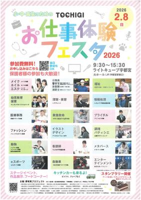 夢発見プロジェクト主催のお仕事体験フェスタ2026の案内が届きました。興味のある方はQRコードで申し込んでください。